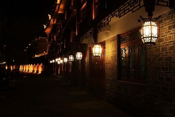 夜晚,古城的一切都被光与影揽入怀里。那高挂的一盏盏灯火,温暖了古城的寒冷,驱散了路人的寂寞。这是一座光与影的古城,一座现代与古代交汇的古城,也是梦幻与现实交替的古城!