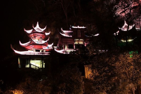 伫立祝圣桥头, 眺望石屏山,凝视青龙洞,凝视魁星亭,飞檐翘角、亭台楼榭被蓝、绿、紫、橙、白等灯光所笼罩,时而紫蓝,时儿橙绿,时儿青白,光怪陆离,晶莹剔透,通透明亮在夜空中,像座座流光溢彩的冰雕,古城千年文化仿佛在一夜之间被照亮。深邃的沧桑、如诗的华章,都浓缩在灯火的海洋里。