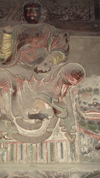 广济寺大雄宝殿因为前有徐继畲纪念馆,后有围墙,所以光线很差,殿堂内阴暗无比,从外面乍进大殿,如堕暗夜,什么都看不清,第二趟进到大殿才算适应了光线,这两尊佛像在正面的释迦摩尼佛背后,随意估摸着拍的。