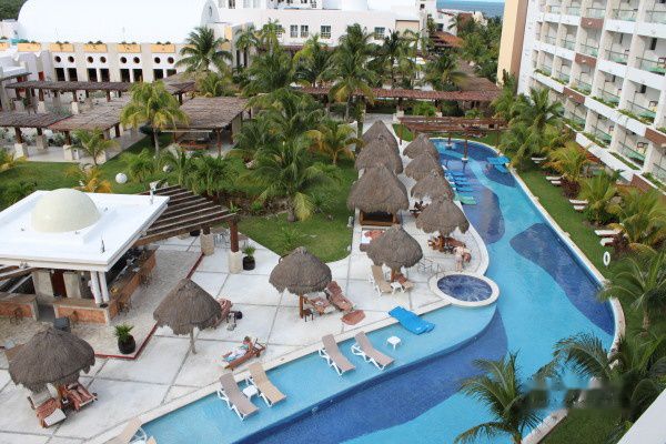 住的酒店每晚300美元含住宿,饮食(含客房送餐),酒水饮料(含客房冰箱内酒水饮料),小费全包括(All Inclusive)。房间楼上有很大的阳台,上面有一个冲浪的小游泳池。酒店内有九个餐厅和五个酒吧,随便吃喝。