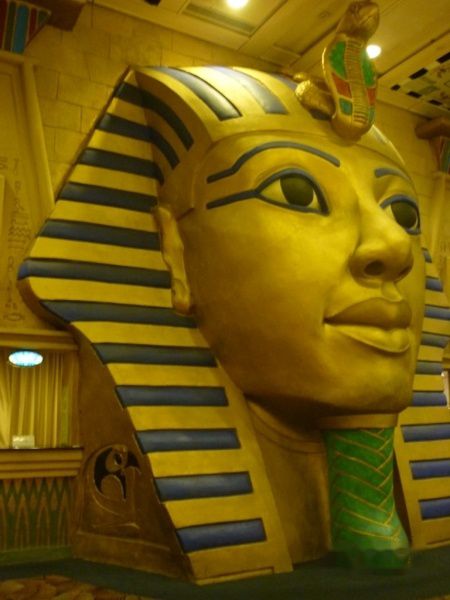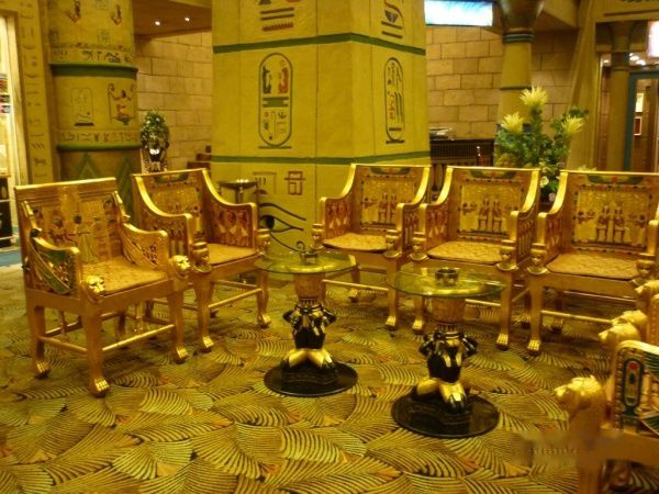 1995年开幕,也是何鸿燊的,它跟澳门置地广场是一幢楼。我是在澳航的杂志上看到它的介绍,是唯一的埃及主题**,于是去走走瞧瞧。在三楼,楼下是商场,前厅很小。不过,照片拍出来还是不错的。