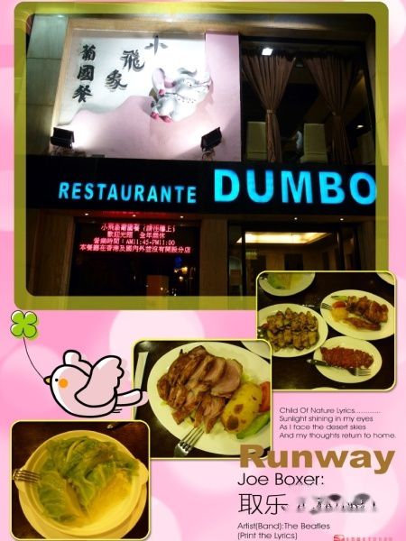 一到澳门,就跟姐姐讲我一定要尝尝葡国菜的。姐姐跟我讲,葡国菜味道是不咋滴,因为葡国菜都是以咸、腌为主的,但是一定会带我去的。作为游客,应该带我们去赫赫有名的小飞象,尽管她认为这家店在当地人眼中很一般。反正她请客,我能尝到葡国菜就行。 品完之后,心满意足。总体来说,还是不错的。让我可以细分西餐中不同国家的特色,我很喜欢。