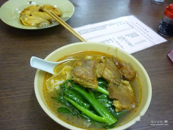 我们到澳门后的第一顿就是这家的,姐姐打包上来的,因为我们7点的飞机到达澳门,上机前吃了不少零食,又吃了飞机餐,已经不想吃晚饭了。 我们各一晚甜汤,这甜汤很怪异,有海带的,但是甜的,真的很别致很好吃。还有,姐姐那碗炒河粉,朋友喜欢得不得了,嚷嚷着下回一定要去吃。 它早餐不供应的,中午才开,我们去吃了一顿晚餐。对于不熟的店,我肯定会点他们的招牌,这次是咖喱牛腩面。那个牛腩,真是嫩啊,量又多。咖喱对我来说,偏辣一点,不得已又叫了杯可乐,可是这样真的能让人吃得很满足,关键价格也便宜。3碗面,1份鸡中翅(6个),一杯可乐,才80葡币。