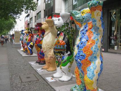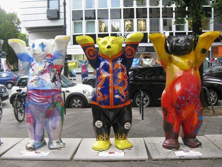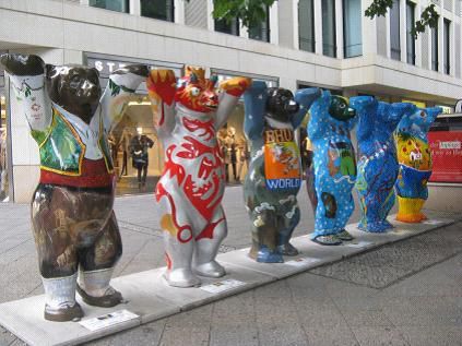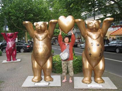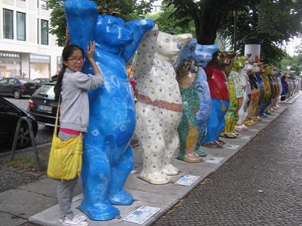 因去年夏天,我在柏林玩了三天,再加上大脸丢了背包,天气也不太好,我们就没有细细地赏玩柏林城了。只是由我做向导,带着大脸去了议会大厦、勃兰登堡门等几处知名景点转了转。倒是在那一大群柏林熊身上花了不少时间,话说中国那只真的不怎么好看呢!(LOOK ,中间那位便是,还挑眉,切!)
