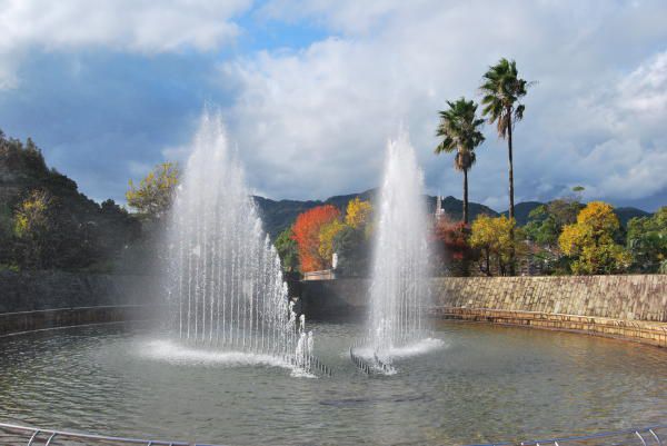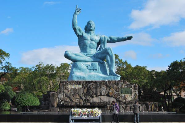 和平公园位于原子弹落下中心地北侧的小山丘上,它的建立饱含了绝不再次发生悲惨战争的誓言和对世界和平的美好向往。这里矗立的和平祈念像,高达9.7米,象征了长崎市民对和平的渴望。作者是长崎出身的雕塑家北村西望先生,该雕像作为上帝之爱与佛祖慈悲的象征,右手指天表示原子弹的恐怖,左手平伸象征和平,双目轻闭,似在为原子弹爆炸牺牲者祈祷冥福。每年8月9日的原子弹爆炸纪念日,在此雕像前都要举行和平纪念仪式,面向世界,发出和平宣言。园内的“和平泉”,雕刻了辗转寻水的少女手记,与世界各国赠送的纪念物一起排列,形成了象征世界和平的和平地带。