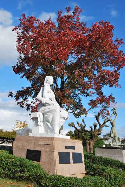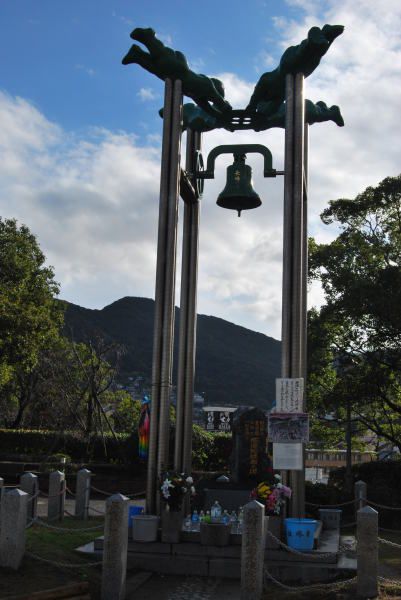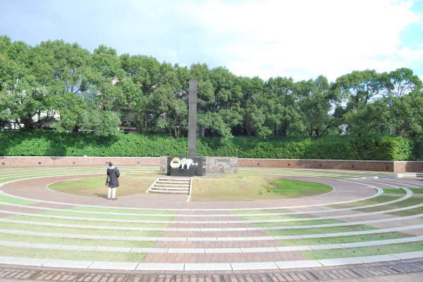 经过昨晚的策划,临时改变行程。安排如下:早上游长崎看和平公园,原子弹爆炸纪念馆,爆炸点。浦上天主教堂等景点。下午坐车去博多,住在博多(以前安排是住谏早的)为明天新干线游往前赶点时间。谏早到长崎30分钟车程,下车后先奔和平公园,观看著名的雕塑。 长崎位于日本九州的西端,由五个半岛和若干小岛组成。碧绿的海水,繁花似锦的海岸,自然风光旖旎秀美。据说,这里是世界上最洁净的海域之一。我想,这恐怕不是长崎举世闻名之所在,而真正的原因在于,二战期间美国的一颗原子弹炸响了它,才使世人认识了它,至今依然关注着它。
