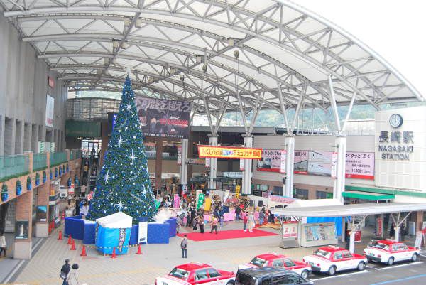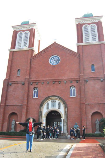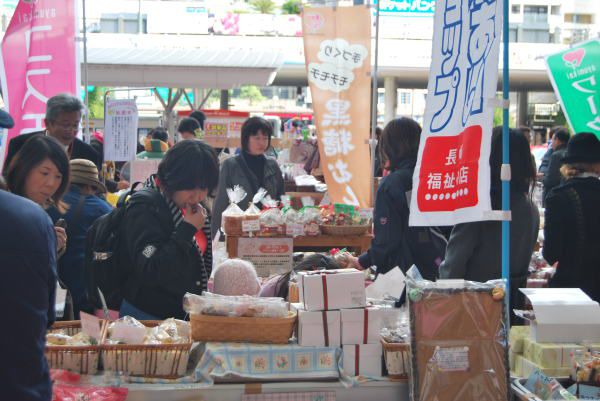 在纪念馆里有很多的学生在参观,我们从那出来到浦上天主教堂游览,完事直奔长崎车站,今天是星期六,站前正在商品热卖,熙熙攘攘的人群,我们也加入其中,开始了叁观和品尝的活动。