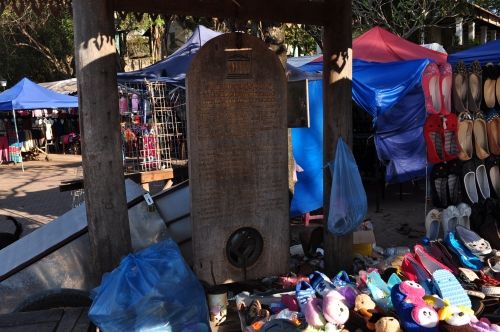 被小摊包围的世遗碑