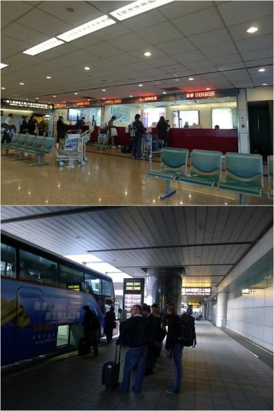 这样折腾加磨蹭,到了机场巴士售票处时都下午2:40多了。也是好几家巴士公司的柜台一字排开,由旅客自行挑选。之前做了攻略,知道找那最便宜的大有巴士,到我们的目的地--喜来登大饭店90台币。当然我们并不住在那里嘿嘿。