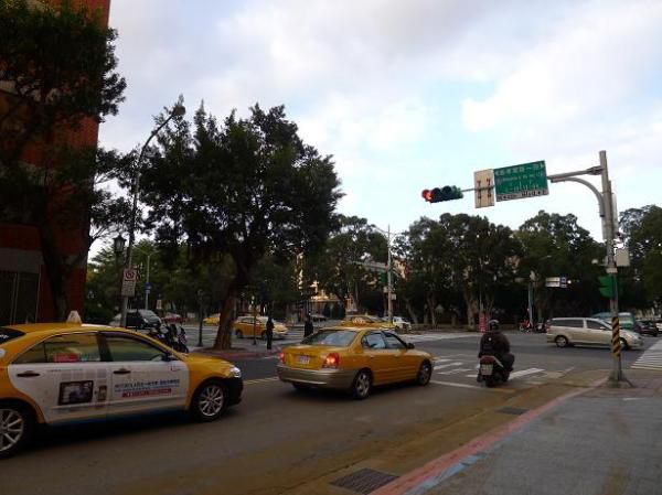 台北的士在身边驶过,明亮的黄色令人眼前一亮。