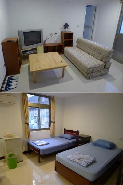 又是绕来绕去又是钥匙ABC,我的头大终于到进入房间为止。走廊尽头的5号房间,SURPRISE~~~~~~~~虽说知道是twin room,有沙发有卫生间,没想到现实条件真是超乎想象~!(相比大多情况都是反之)两个人住绰绰有余,十二分的干净整洁,卫生间很宽敞,洗浴设备一应俱全,衣架、衣柜、一堆晾衣架,还有一个小阳台,提供无线wifi,走廊里还有全自动洗衣机和24小时开水,哇哈~!这样的地方一天才收我们900台币,差不多就是一人100人民币吧,颇为满意!至少两个人不用挤一张床了~~HAPPY~~