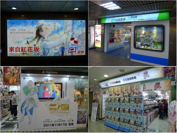 宫崎骏吉卜力工作室的新片广告,十分醒目,近前细看,竟是翌日便开始放映,心上一喜,作为长久以来宫崎骏动画片的爱好者,在大陆可是无缘这种机会啊~~是不是可以安排看场小清新的电影啊啦啦啦~~~?另外日本动漫周边的贩售屋也不少,宅男的天堂。。。