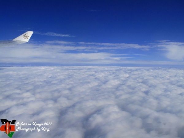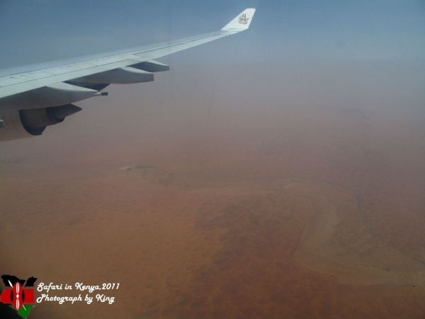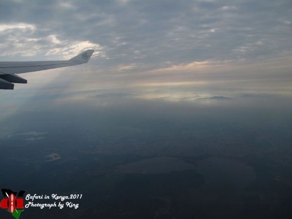 3小时一晃即过,我们又要开始下一段航程了,飞往内罗毕的EK0721航班竟然比飞北京的EK0309航班更大,3-4-3布局的波音777-200。空乘们还是一如既往的热情,还向小朋友派送礼物。我儿子得到了小书包,书籍,铅笔等物品。机上设施和前次的A340没有区别,我儿子很快又开始重温功夫熊猫2了,不时发出不合时宜的笑声。餐食方面,菜单不再有中文。吃过一顿晚饭后,到达内罗毕。出内罗毕海关在填写外国人入境卡时,一位黑人妇女拿出一瓶空的风油精问我有没有这个,我说有,不过在托运的箱子里,她又说取行李后能否送她一瓶,我说那个箱子很大,不太好找。她也就不再强求了。通关还算顺利,不过与简陋的机场设施相反差的是竟然还要指纹采样。取行李时,速度缓慢的行李转盘不时有行李被甩出传送带。地上则堆满了各色大大小小的行李,经询问,那是别的航班的。等待了差不多一个小时候,我们的行李终于出来了。最后一道关卡前,只是检查了一下我们随身携带的小拉杆箱即予放行。出来后,见到了我们的导游和司机。导游是一个河南的小姑娘,刚刚25岁,刚来肯尼亚不到一年。司机是位黑人朋友,40岁,看上去有点胖,不过面目和蔼。在导游的建议下,我们换了300美金,1:90的汇率,到手27000肯尼亚先令。顺便又换了些美元的零钞。