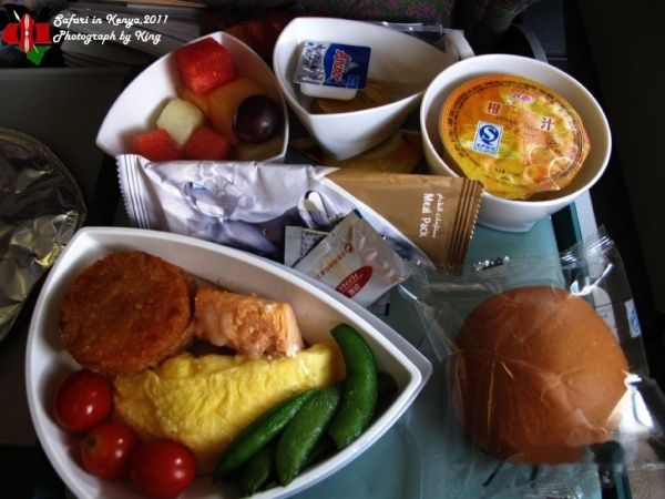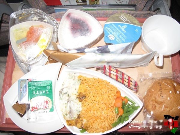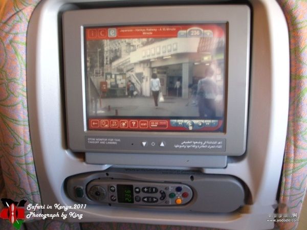 值飞该航班的是A340,2-4-2的格局。落座后,感觉Emirates的座椅还是偏向于为西方人士设计,座椅偏高,我170cm的身高正常坐好后脚离地面还有3、4cm的距离,靠背向后倾斜后,脚离地更高,久坐确实不太舒服。还好,Emirates的机载娱乐系统ICE做得够好,足够让人忘记这些不适。ICE是Information、Communications,Entertainment的缩写,在Information下可以通过机内的前向和直下摄像头观察飞机外的世界,此外可以了解飞机所处的地理位置,甚至可以跟着视频学习如何放松自己的腿脚以避免下肢深静脉血栓。在Communications下可以收发邮件、**电话,甚至可以机内其它座椅的同伴,不过我试用并没有成功,也许是我的操作有误吧。Entertainment是最招人喜欢的,有大量的电影,电视节目还有游戏。目前还没有在中国公映的《Source Code》也被我们先睹为快,我儿子则连看了三遍《功夫熊猫2》。整个旅程中我看了4部电影,除了英音中字的《Source code》,纪录片《非洲大猫》,还有日音英字的《坂急电车》,纯中文的《万有引力》。同行的天天姐姐则把系统内的所有游戏玩了个遍。娱乐内容极大的丰富让旅行中从未感觉到枯燥。