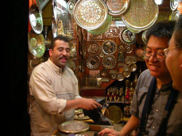 穿行在古老城市的街巷,和埃及人友好的聊天,他们也一样地买菜做饭工作生活,现代商业形式被阿拉伯风格取代,古老文明的基因让他们和中国人一样聪明,买东西砍价那是必然,武力抢夺在这没有,那没有技术含量,用智力蒙骗倒和中国的一样精彩 呵呵,我一会带大家去开罗最大的集市 HALILI 看看,在那里遇到的事让我放松的心情重新变回中国一样的紧张