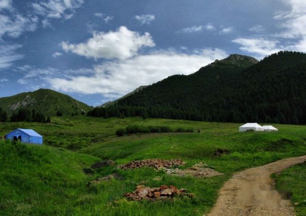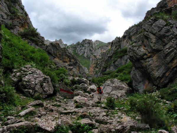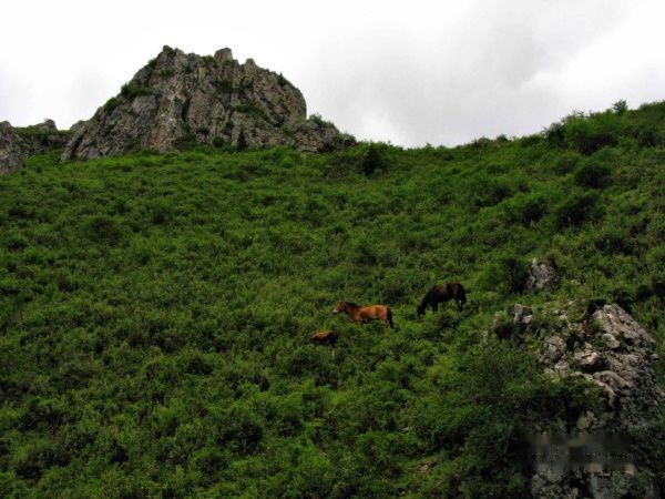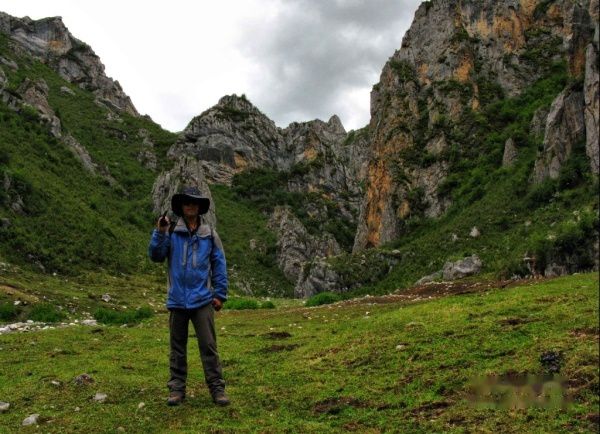 这里终于碰到游客了,两个大学生,他们跟我提供了峡谷的情况,说这片从草场一直往上,就是白龙江的源头,不行往返大概需要两个小时,而从草场西边走,则是一个牧场,约有20分钟的路程。此时感觉天要下雨了,我选择去比较近的牧场。