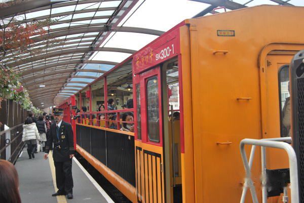 我边跑边喊着来到车站一看车已开走了,我跟工作人员说这怎回事?(我不会说日语,别人也听不懂我说什么)工作人员看了一下我的票指指时钟说以过了两分钟,一耸肩膀没办法作废了。我用肢体语言告诉她,我是路不熟被人指错了方向要了弯路,跑着来的。你看我这一头汗啊!由于我的表演到位真切,引起了她们的同情,但是主管人员还是说:对不起,我无能为力。这时我老婆泄气了站到了一边不抱希望了,我还是继续争取着,唠叨着说个不停。工作人员摇着头,面带微笑不停的说爱慕扫瑞。看起来今天这关我是攻不下了,岚山观光列车我是坐不了。有几个游人在看我跟车站工作人员沟通,可能是觉着好笑吧,连比划带说的,也挺逗的。站里有个长者走过来,我不失时机的跟他说,我是多麽的想看漫山红叶的烂漫景色,他跟那个工作人员说了一下就冲我笑了一笑,做了个手势OK。工作人员就给我**了12点55的车次了。还一个劲地用手势告诉我不可以再晚了,哈哈,你说这世界上的事一切皆有可能,只要你努力争取就有希望。现在就剩下高兴了。