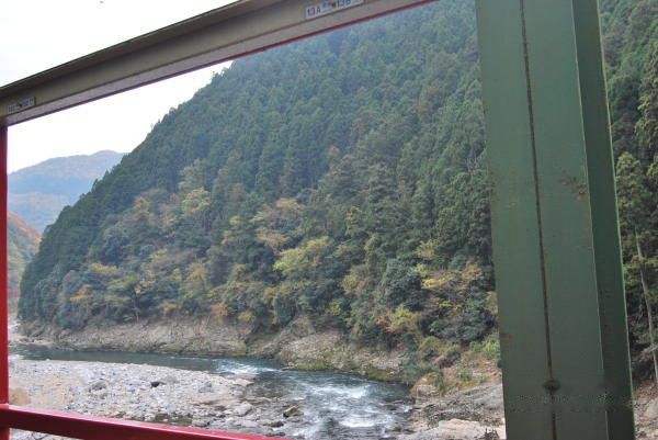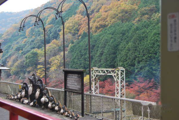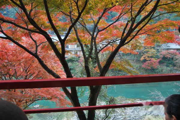 岚山京都著名的景区,看樱花看红叶都是必去之地,它的蹉峨岚山观光列车也很有名,列车穿行在山谷之间,河流峡谷风光宜人,一片一片红叶挂在崖间,列车停停走走给游人拍照,只做观光游览用的一条旧铁路,有三十多公里吧?