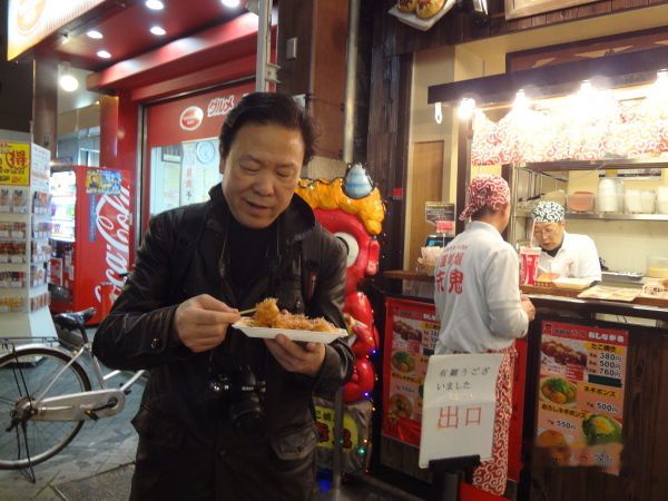 大阪攻略知道拉面和章鱼烧比较有名。先花800日元买一份章鱼烧,正宗大阪章鱼烧我看也就那样,到是在大阪城吃的章鱼烧比道顿堀夜市上的好,还便宜500一份