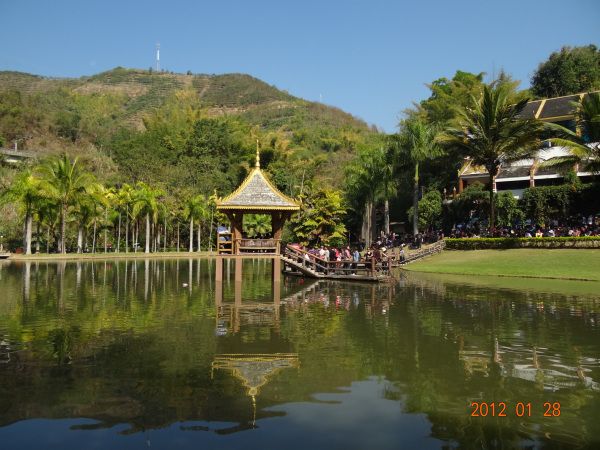 失去了野象的野象谷,像是一个空荡荡的野山。我们看了百鸟园,里面全都是驯鸟的,让鹦鹉飞去叼游客手里的钱,鹦鹉滑旱冰等。然后是蝴蝶园,有蝴蝶从蛹到成虫的展示过程。再后面是一个大湖,湖对岸是一个大棚子,里面有数以千计的游客在吃自助餐。