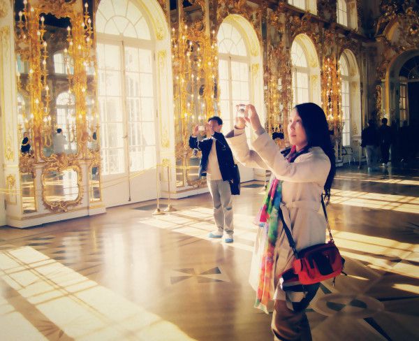参观圣彼得堡冬宫有人数的限制 大家要按到这时间的早晚在门外等候安排