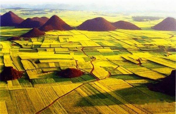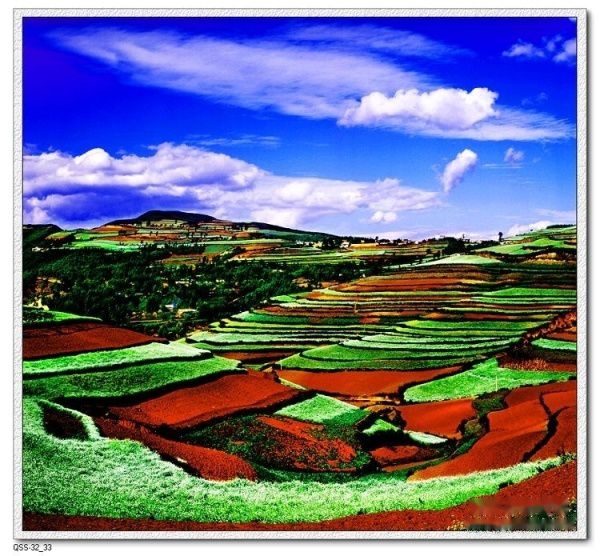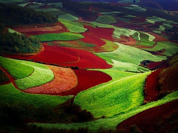 东川红土地地处乌蒙山区,属高原山区地貌,此地山岭纵横交错,出峦起伏不平,红土丘陵一望无际,加之季风影响,形成了气候温和、干湿分明的高原季风型气候。 到红土地摄影最好的季节是9到12月,这个季节油菜、土豆、荞麦正在陆续收获,冬小麦正在发芽拔节,还有路旁、村子旁、树林里的杨树黄了,漆树红了;其次是1、2月,这时小麦生长正旺,月亮田里放满了水;还有就是5、6月,油菜花开了,麦子成熟了。这些季节是色彩丰富的季节。