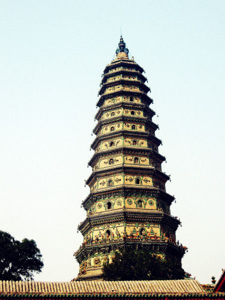 更为凑巧的是,当年募资修塔的达连大师,法号就叫飞虹。1962年有人又在九层的莲瓣上发现了:“匠人尚延禄、张连文、王述章造”,这是迄今为止我国发现的古代琉璃塔中唯一留有工匠题款的建筑精品。