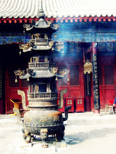 飞虹塔的内部构造也别具一格,正中是一尊高达5米左右的释伽牟尼铜像,四周用琉璃构件组合成了美丽的勾栏、楼阁、盘龙、人物,顶部还有绚烂多姿的藻井,整个布局宛若西天胜境,曲曲折折的云梯可以一直攀缘到宝塔的十层的内部构造也别具一格。如今为了保护塔内的建筑,游客只能够上到塔的第二层。