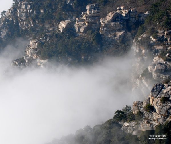 云雾还会玩出新的花样——缥缈中幻化出千奇百怪的形状:有的像朵朵琼花展苞怒放,有的似的道道瀑布凌空高悬,有的如缕缕炊烟婀娜飘忽……