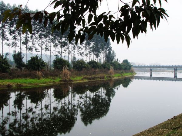 临溪河的另一侧,则是绵延而不高耸的大五面山,山上分布着一片片柑园、茶园,鹤山书院,书院禅村在绿树、竹林掩映之中,若隐若现。