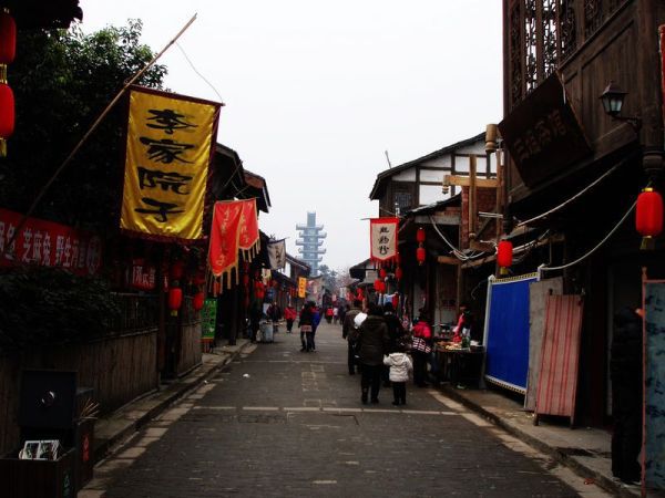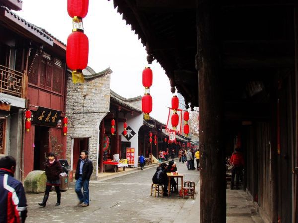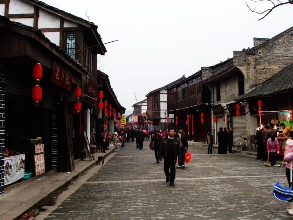 古镇的街道上人并不是太多,没有了摩肩接踵的人山人海,古镇更显古朴、安宁,可以慢慢地走,静静地看,细细地品:水巷子,了瓮井,过街楼,烟巷子,大川号,老邮局,湖广会馆,台子坝,龙眼井……