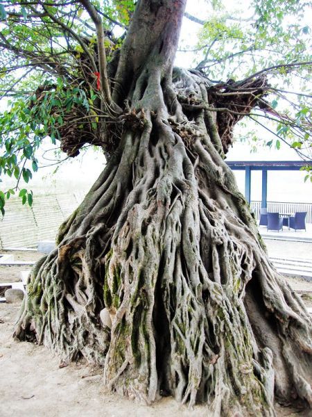 给我留深刻印象的是,临溪河边那一颗颗高大、粗壮,虽然有些叶疏然而仍然枝繁的古榕树。树缠藤,藤缠树,根与根相连,枝同枝相绕。每一棵古树都一个美丽的故事,因而每一棵古树都有不同的命名,如“夫妻树”:相传在北宋时期,临溪河畔有一对夫妇,两人恩爱无比,相濡以沫,他们死后化为了临溪河畔的两棵榕树,相依相偎,不离不弃,故名。再如“菩提树”,传说北宋末年,由于连年战乱,世道艰难,盗贼横行,一位来自峨眉山九老洞的游方和尚,化缘到此,便在莲花树下以参禅之道劝化世人,使得盗贼减少,西来从此安居祥和,后来老和尚在此树下坐化,当地人便把此树取名为“菩提树”。此外,还有“母子树”、“英雄树”、“兄弟树”、“恐龙树”、“迎宾树”等。