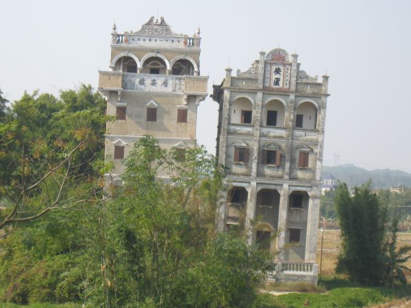 右邊一棟明顯傾斜,因地基不隱。