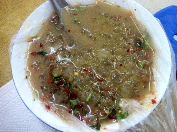 回来吉林市之后,在我的一再要求下,皓哥带我去了他们本地人热衷去的一间很火爆的煎粉铺---巷子煎粉。听名字就知道它有多弄堂。小小的铺子门口停满了车,皓哥说来这的70%是开车来的,剩下30%是打车来的。煎粉是什么,估计除了吉林市的人以外没人知道吧。只要大家不怕环境不好,都可以来尝试一番哦。口感滑溜溜,捏成不规则一小坨一小坨的透明状物体。有一点点汤水,味道不清淡,微辣,不知道怎么形容,反正还挺好吃的。