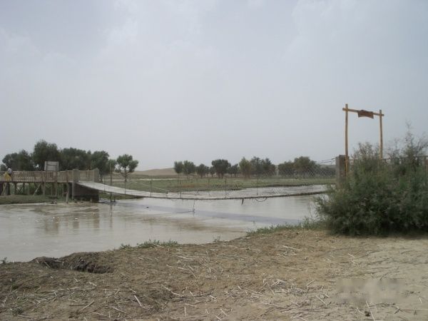 又去了尉犁县的罗布人村寨,有趣的是在这里细细的钢索搭几块木板晃荡索桥就能跨过塔里木河。