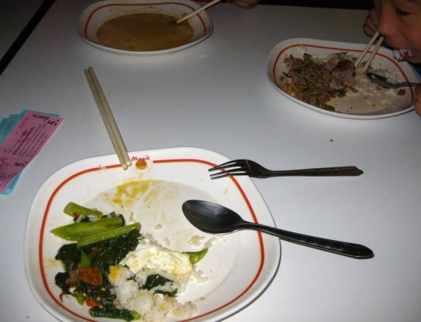 乘坐亚航的飞机在下午1点半到达曼谷机场。我们赶紧来到一楼的magic food point,这里很多旅客在消费,各种餐食都有,也很便宜。我们叫了四个碟头饭,总共155B。这里也要先购买代用券的,用不完的可以退。
