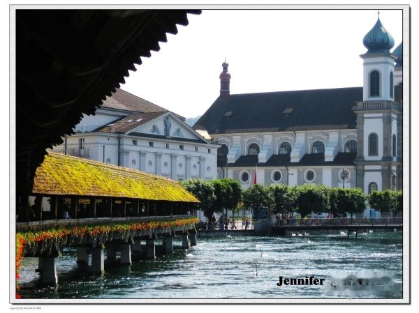 也许只有卢塞恩才配它了,若放在其他地方都嫌太普通。木质的卡贝尔桥淡淡地架在河上,就如邻家女子,虽面目端正,却是姿色平平,太过朴素。而卢塞恩的山光水色是她颊上的一抹胭脂,于是眼角眉梢立时有了风情,成了可入画的风景。