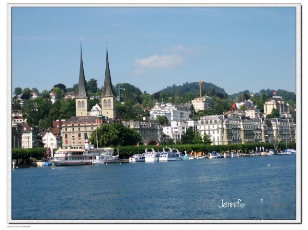 从英格堡出发,瑞士的山水之美,被浓缩在我们前往卢塞恩的路上。六月的初夏,正是这个小国一年中最美的时节。蓝天白云下的山谷给人无边无际的感觉:如丝带一般的河流、茂密的森林、青葱的草原、花花白白的奶牛、翡翠般的湖泊……仿佛移动的电影镜头,慢慢的消失在身后,却永远留在了心中。40分钟后,车到终点—瑞士中部的首府,瑞士最美的城市卢塞恩。