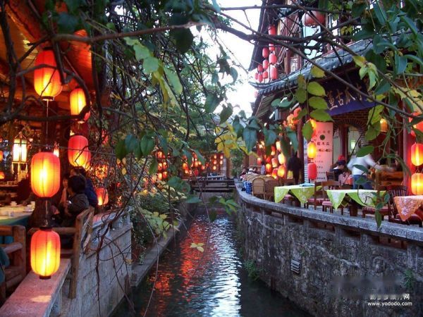 茶马古道,曼妙的丝巾,清脆的驼铃声.阳光,咖啡,发呆.这就是人们爱上它的原因吧!不需要时间,不需要思考,就这样吧!我的潘金哥和他这个可爱的潘金小妹游走在小镇深处,古老的纳西小院里依然保存男尊女卑的风俗,豪华的二层楼留给男人,供他们风花雪月吃喝玩乐,而门口的破旧的小房子给了女人,让她们看家护院下田劳作!此时我深深感叹幸好我不是纳西女人!虽然有辛苦的女人但还有在门口悠然的老人,三叠泉边嬉闹的玩童.我们踩在油油的石板路上慢慢的爱上了这浪漫的地方,醉人的红灯笼,弯转流长的溪水,唱不完的情歌,真的是你离丽江有多远就离天堂有多远!