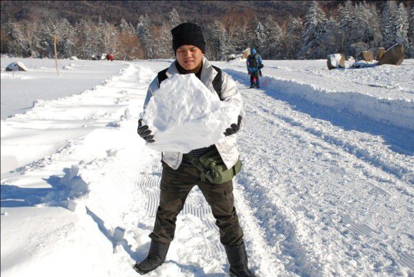 偶尔还能在雪堆里刨个大雪球,砸跑身边随行。