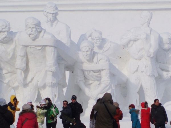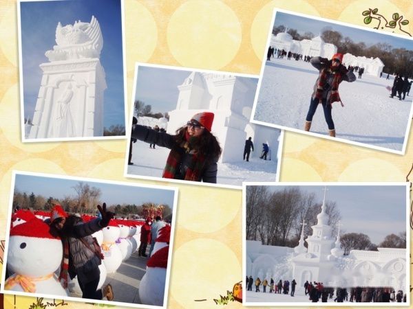 火速在雪博会门口买了个小红帽,看各类雪雕建筑,生动活泼,甚是有趣。