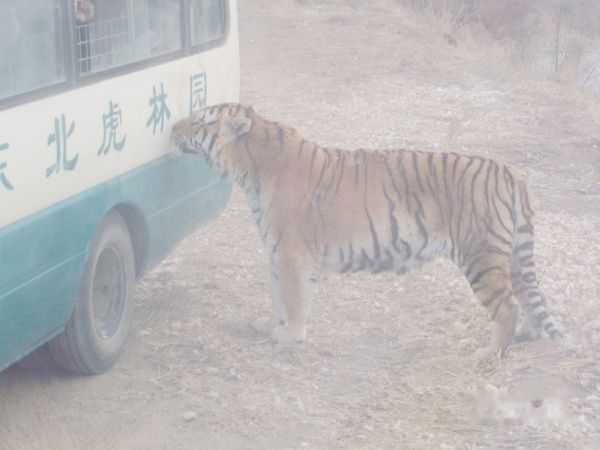 体型彪壮的东北虎偶尔会跟着旅行车走走, 从窗子里看下去,还是有点胆儿颤 ~~
