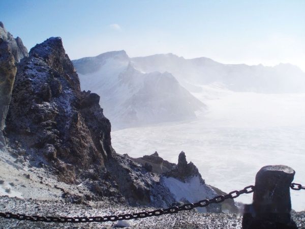 一路坐车加走路,登顶很好运气看到传说的天池。虽然是冰冻状态。但看的很清楚。