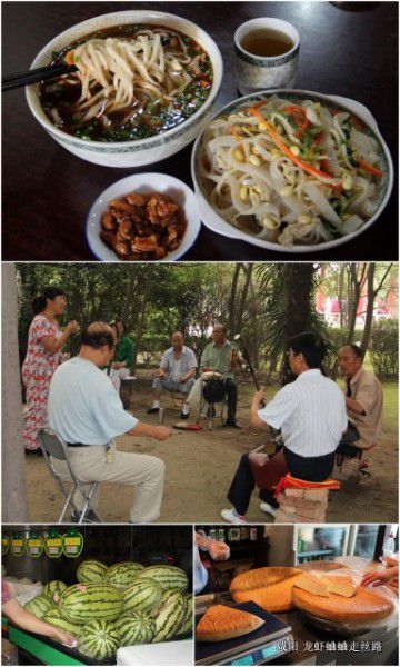 因为拍照,在咸阳碰到的人都给我们留下了愉快的回忆。昨晚初到咸阳,看到了记忆中大冬瓜一样的大西瓜,激动得举起相机就要拍,超市的大婶赶忙把西瓜转个向,让最肥的一面上镜。今早我们要拍锅盔,大爷一声等等,手一挥灯就亮了,橙色的灯光,锅盔瞬间金灿灿。古渡公园唱曲的大叔看到我们饶有兴味地欣赏他们的演出,也拿出自己的花鼓和快板加入了吹拉弹唱的乐团,让我们尽情地拍。离开咸阳了,带着对这个小小城市的温情记忆。