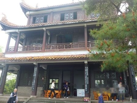 。在桃花山上卖一种当地的特色“擂茶”,(是由茶、生米、姜、芝麻、花生等集合捣碎用开水冲泡而成)可以单杯买来品尝,通常是十几个大小碟摆在桌上,大家围坐桌旁,品擂茶吃东西。我们心想把三个景点走完再喝一杯。当我们想喝的时候,正式的卖擂茶的地方又不卖单杯的了,好遗憾。