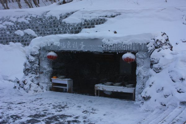 晚上住在北坡的温泉酒店,顺便去泡了下室外温泉,短短几十步路,头发都结成了冰。