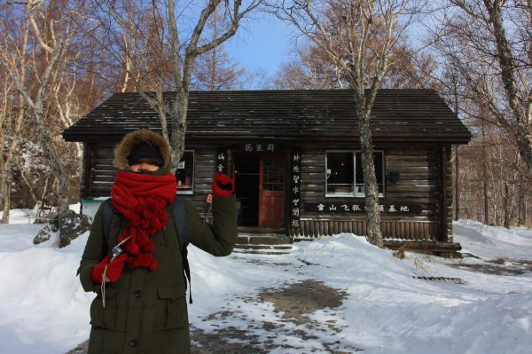 颜色很美,相比小天池,更具观赏性。玩完这两个点,我们坐车到调度中心,花了80元坐上越野车上天池,工作人员是这么说的:可以上,但不知道能否看到天池。其实很显然是看不到的,硬着头皮上到天文峰,哇噻,什么都看不到,只有威力超猛的狂风等着不死心的人,明明走的是直线,风硬生生把我吹成偏右45度,只有往左走,才能把我带到正道上。正体验中,发现金赛已经躲在车旁不走了,直打招呼上车下山,心想:疯了吧,好不容易上来,总要到服务中心坐会儿,等等老天是否能开眼。这时的金赛是决绝的,我们就带着bye bye天池的心情下山了。一看时间还早,刚好给最后一个景点。地下森林,就是一氧吧,走走停停两小时,至少身体是好好呼吸了一把。北坡是一个景区,景点多,但冬天胜在人少,也可玩得很惬意。(长白瀑布+聚龙泉1.5小时,小天池+绿渊潭1-1.5小时,地下森林1.5-2小时,景区8点开门,算4点下山,环保车耗费的时间加上充饥算1小时,天气好的话有2.5小时看天池,一天满打满算也是可以把景区都玩遍)