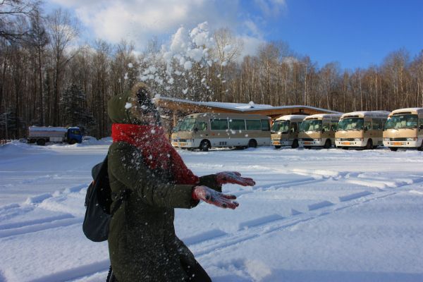 12月2日,没事总要去看看机票,“去哪儿”很管用。11月网站上有团购去长白山的,由于时间上已赶不及,稍有遗憾。没想12月又来团,看了下内容,总觉得旅行社的自由行还是受到拘束,查了下机票,上海飞长白山530+130+50,回程360+130+50,很有诱惑力,立马着手查各方面的信息。包车还是坐旅游专线这个问题纠结了很久,由于是两女生,而且到达长白山机场已是晚上(20:35),最后一班旅游专线时间(21:00)错过的话,情况就很复杂,现实是飞机的确是晚到了,走出机场21:00,但据金赛说,她看到了有人举着“旅游专线”的牌子。如果怕误点,使自己搞的不要太凄凉,那就包车。如果想节省费用,那就坐专线,但是保险起见,应先联系下旅游专线,明确下是否航班延误也是会等,当时我们就是少做了这一步,估计是会等,因为这专线就是以接机的时间来安排的。搞定了机票和包车,住宿上我们安排了两晚金水鹤国际酒店,准5星,二道白河最好的,标间400元/晚,总的来说还可以,相当于我们这边的准4星吧。最后一晚住在北坡口的蓝景温泉度假酒店,说是唯一一家五星的,标间580元/晚。入住后可凭南航的登机牌免聚龙泉温泉养生会馆门票(198元),这酒店还是很不错的。从定下来到出发,一个星期里,我和金赛买齐了装备,包括公司服装部出口转内销的羽绒裤(太给力了,卖的正是时候),淘宝上的手套,雷锋帽,雪地鞋,口罩+暖宝宝(这两样基本没用)提前一天电话预定了黄龙集散中心发往上海浦东机场的大巴票,所有事情都搞定,就等10号的到来。