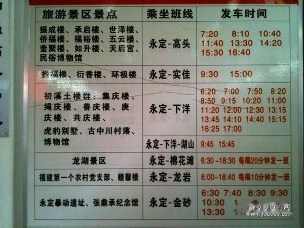 永定土楼 客车时刻