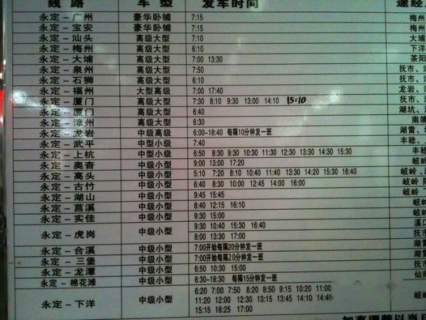 永定客车时刻
